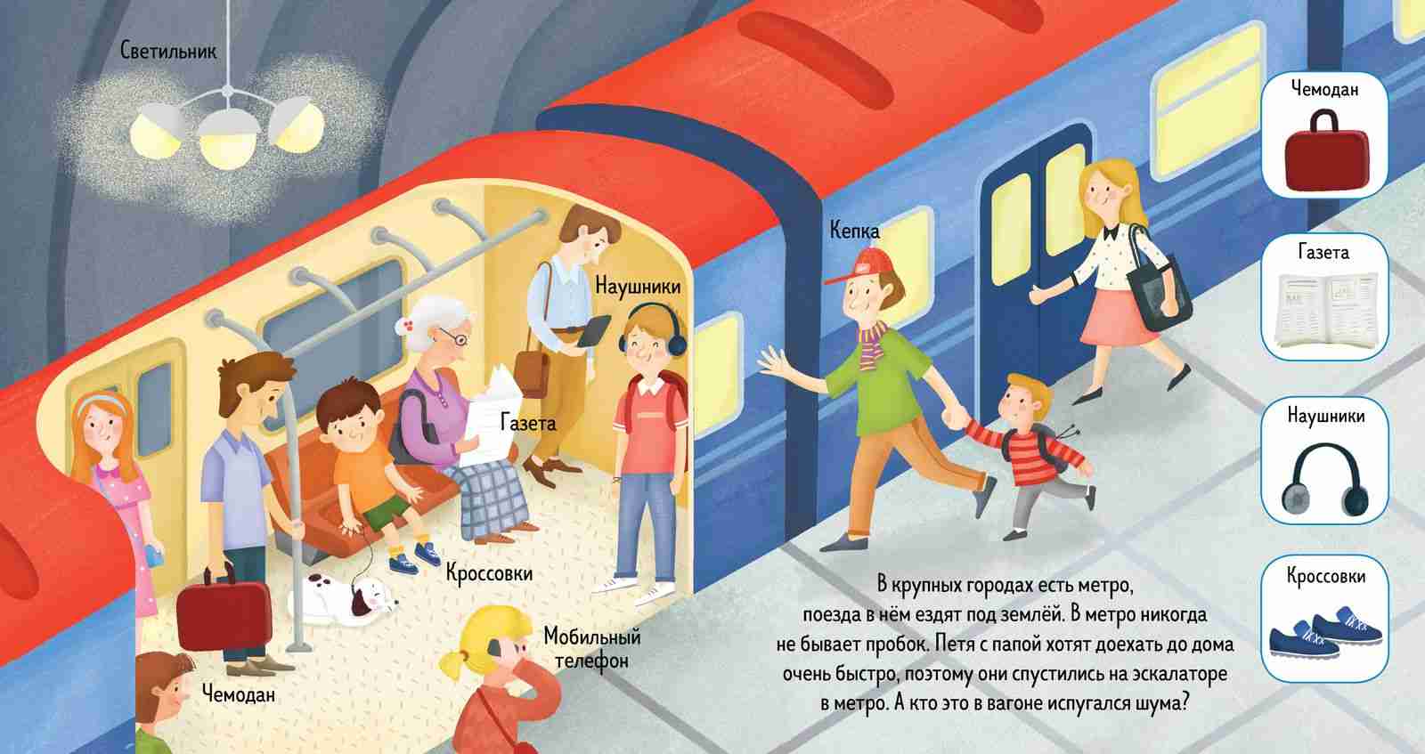 Пока ребенок рассматривает картинки и ищет предметы, он будет знакомиться с окружающим миром и узнает много интересного о машинах, лодках, пароходах, трамваях и поездах. Вы и сами будете с удовольствием рассматривать книгу. Ведь самое важное — ваши совместные занятия с малышом.